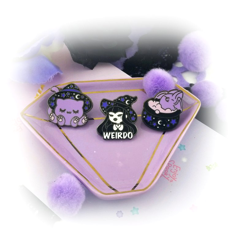 3 matching witch themed pins! Please note that colors may look slightly different when they are finished!