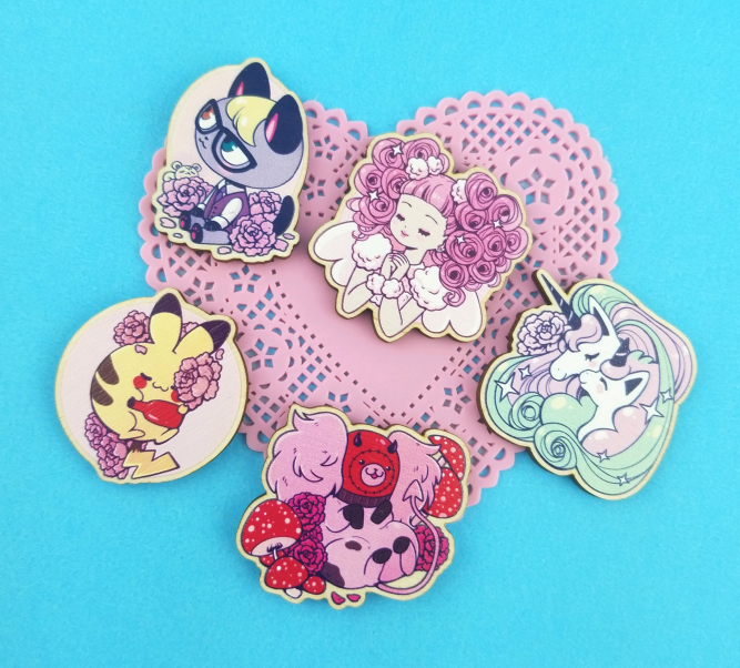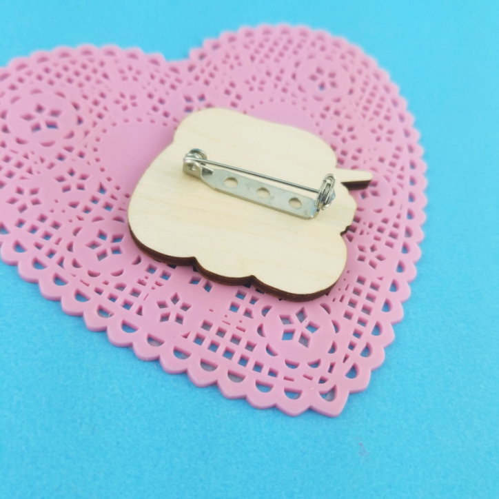 Chose from 5 different wood pin designs. Please refer to images for pin backing type! Because these are wood there is a wood grain grooves. Some of the images show what it looks like! If you don't