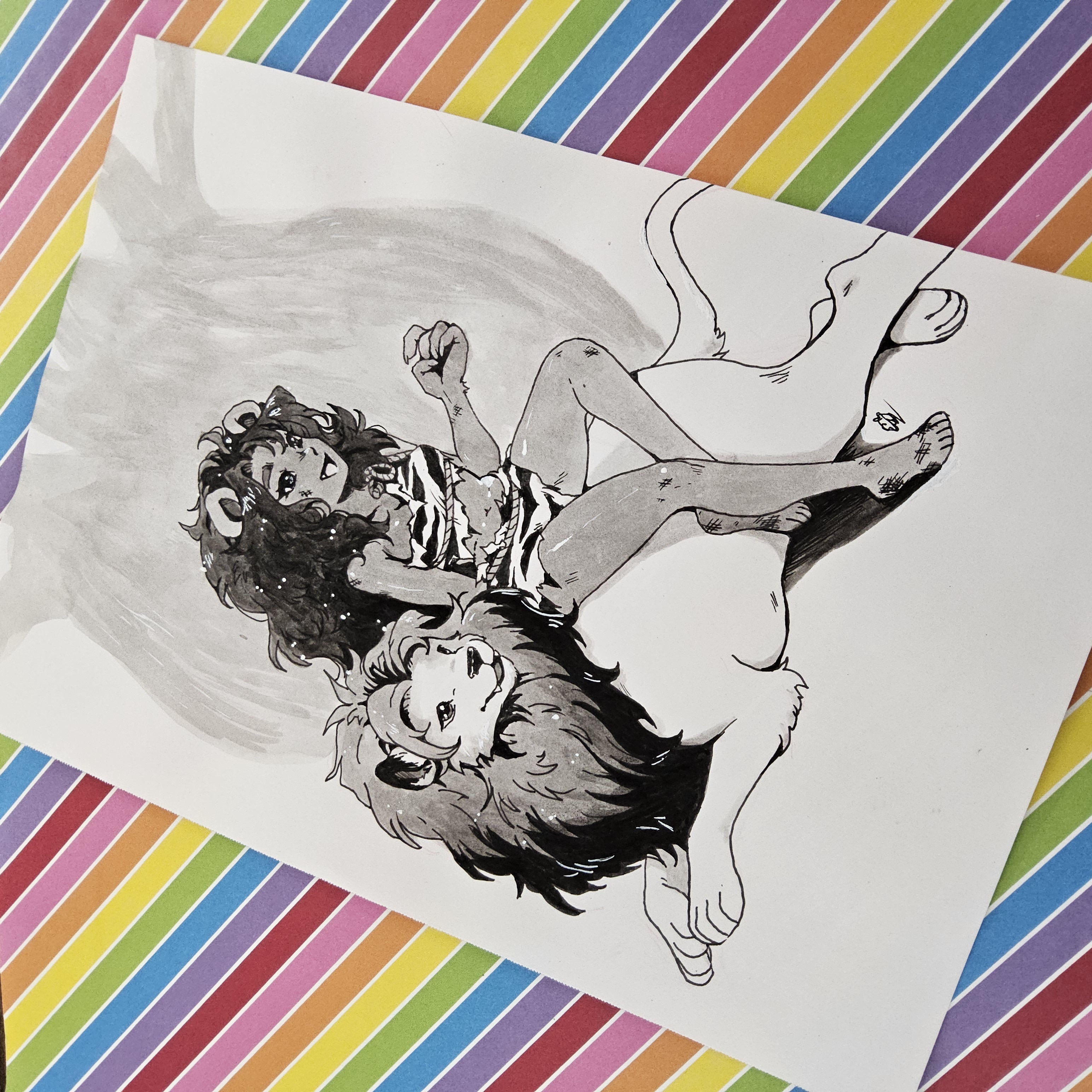 7 x 10 inch Lion girl original ink piece