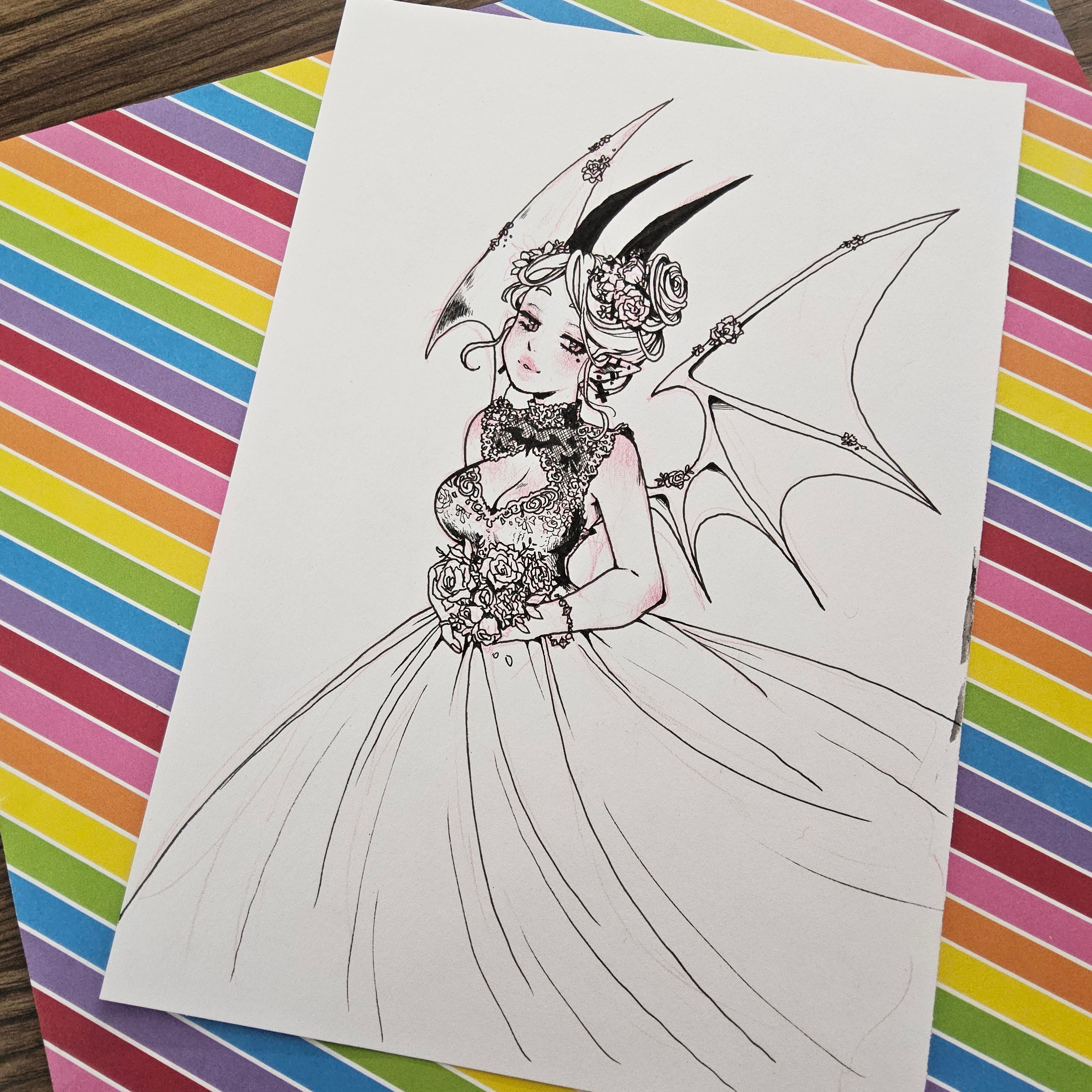 Done on Grumbacher mixed media paper. Drawn with a red Ticonderoga erasable pencil and Sakura Pigma sensei pen. This is coated with Krylon UV resistant acrylic coating. Photos taken around 9am in the morning. Left the photos slightly dark while editing so you could see the pencil. The paper is white.