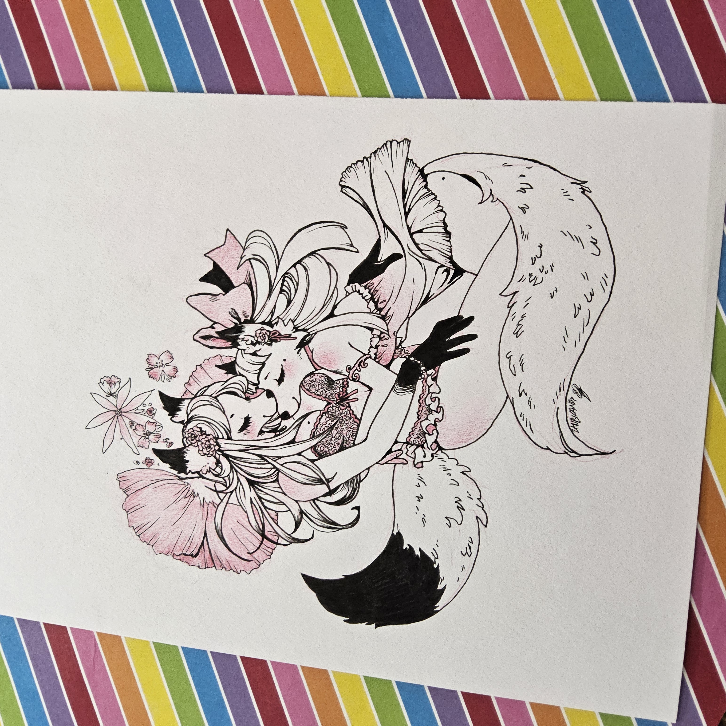 Done on Grumbacher mixed media paper. Drawn with a red Ticonderoga erasable pencil and Sakura Pigma sensei pen. This is coated with Krylon UV resistant acrylic coating. Photos taken around 9am in the morning. Left the photos slightly dark while editing so you could see the pencil. The paper is white.